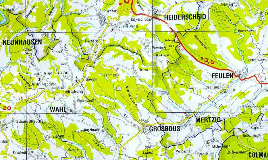Consultez-y la carte du Grand-Duché de Luxembourg, , Grosbous et ses voisins et la carte du village